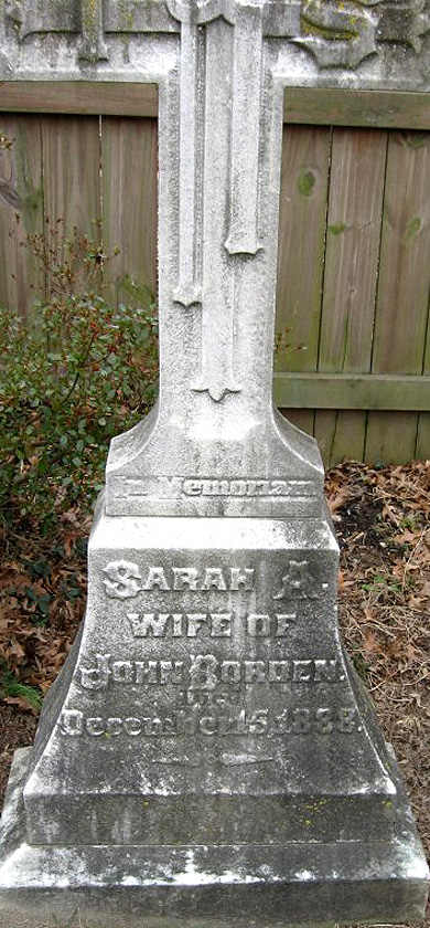 John married Sarah Ann Emley [scrapbook], daughter of Major Joseph Emley, on 2 Apr 1843 in , , New Jersey. Sarah was born on 25 Aug 1819. She died on 15 Dec 1888 in , , New Jersey. She was buried in Trinity Episcopal Churchyard, Morrestown, Burlington, New Jersey. [Notes] |