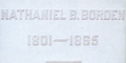 Nathaniel Briggs Borden [Parents] [scrapbook] was born on 15 Apr 1801 in Fall River, Bristol, Massachusetts. He died on 10 Apr 1865 in Fall River, Bristol, Massachusetts. He was buried in Oak Grove Cemetery, Fall River, Bristol, Massachusetts. Nathaniel married Sarah Gray on 16 Mar 1820 in Fall River, Bristol, Massachusetts. Other marriages: [Notes] |