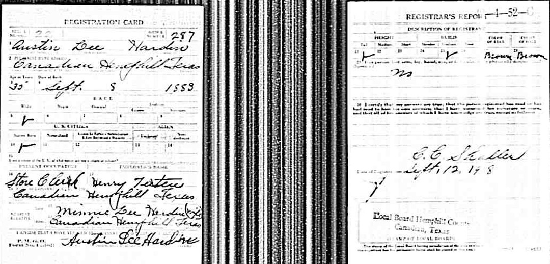 Austin Lee Hardin [scrapbook] was born on 8 Sep 1883. He died before 1920. Austin married Minnie Lea Hammond. |