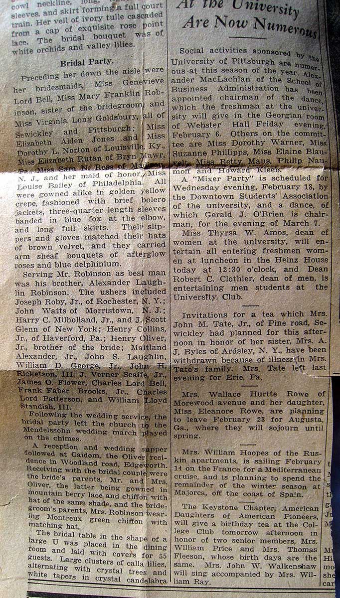 | Newspaper article about wedding |