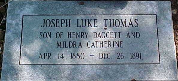 Joseph Luke Thomas [scrapbook] was born on 14 Apr 1880 in Jacksboro, Jack, Texas. He died on 26 Dec 1891 in Fort Worth, Tarrant, Texas. He was buried 1 in Thompson Community Cemetery, Westworth, Tarrant, Texas.