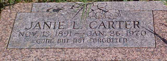 Janie Lizzie Moore [Parents] [scrapbook] was born on 13 Nov 1891 in Chickasaw Nation, Lynn, Indian Territory. She died on 26 Jan 1970. Janie married Charlie Andrew Carter. Other marriages: [Notes] |