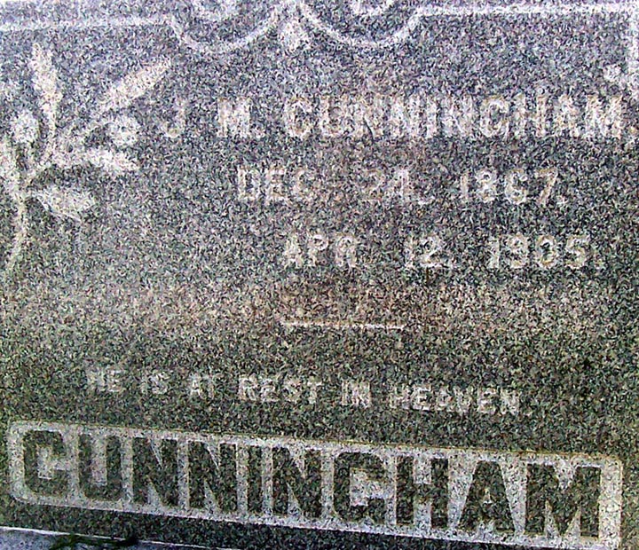 John Christopher Cunningham [Parents] [scrapbook] 1 was born on 9 Nov 1865 in Maysville, DeKalb, Missouri. He died on 10 Nov 1937 in , DeKalb, Missouri. He was buried in Fairport Cemetery, Fairport, DeKalb, Missouri. John married Flora Alice Munkers on 23 Dec 1888 in , DeKalb, Missouri. |