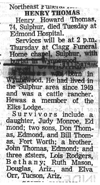 | Thomas Family 1973 L-R Front Row: Martha Rodgers Irwin, Judy Thomas Monroe, Henry Thomas, Herbert Flow~~~~L-R Back Row: Lois Rodgers, Don Allen Thomas, Phil Rodgers, Elva Orr, Pauline Flow, Phil Irwin |